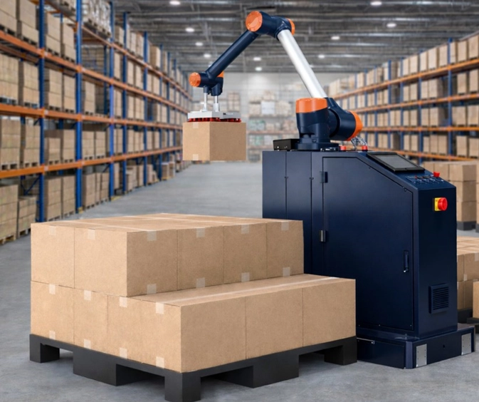 паллетизации коробок на складе или на производственной линии.